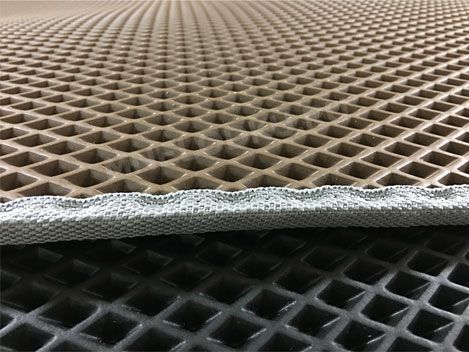 Материал обладает теплоизоляционными свойствами, эластичен и пластичен, не меняет структуру в температурном диапазоне от -65 до +85°С, повторяя рельеф укрываемой поверхности. Этиленвинилацетат, он же вспененный каучук имеет “нулевое” влагопоглощение, т.е. не впитывает жидкости, а грязь и песок легко удаляются, просто ополоснув коврик водой.