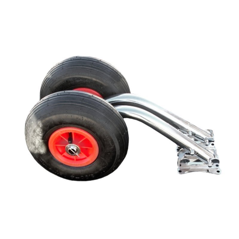 Шасси рекомендуются для лодок длиной от 3.50 м, имеющих верхние брызговики-"косынки" (типа Касатка 385 и др.) Благодаря асимметричному расположению верхнего паза площадки стойка в нерабочем положении отводится немного назад и не мешает брызговикам.